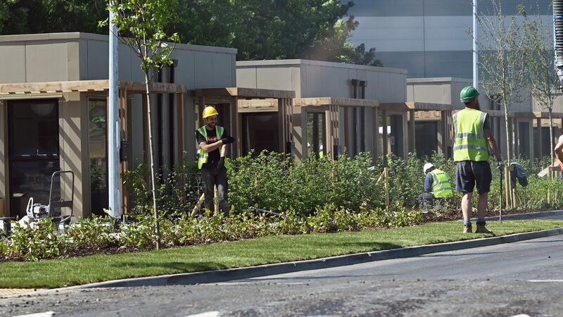 Modular homes under constructon at St Michael's Drive, Mahon, Cork City, in 2023. The OPW revealed that one of the extra costs associated with the site was due to having to remove Japanese knotweed. Picture: Eddie O'Hare