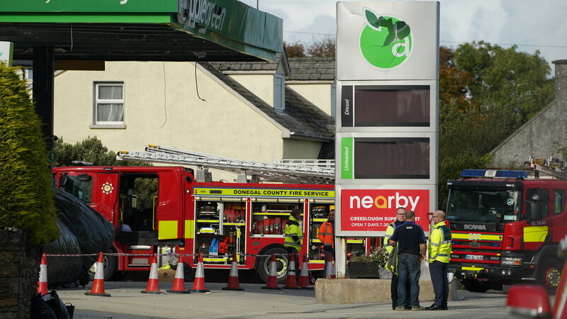 Emergency services at the scene of an explosion at Applegreen service station in the village of Creeslough in Co Donegal, where ten people have now been confirmed dead. File picture.